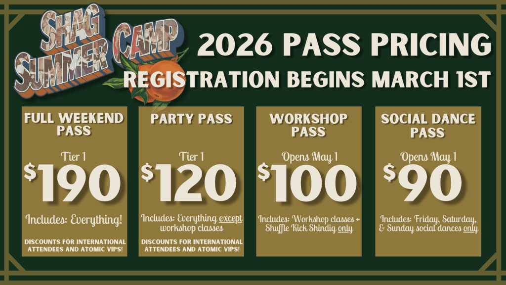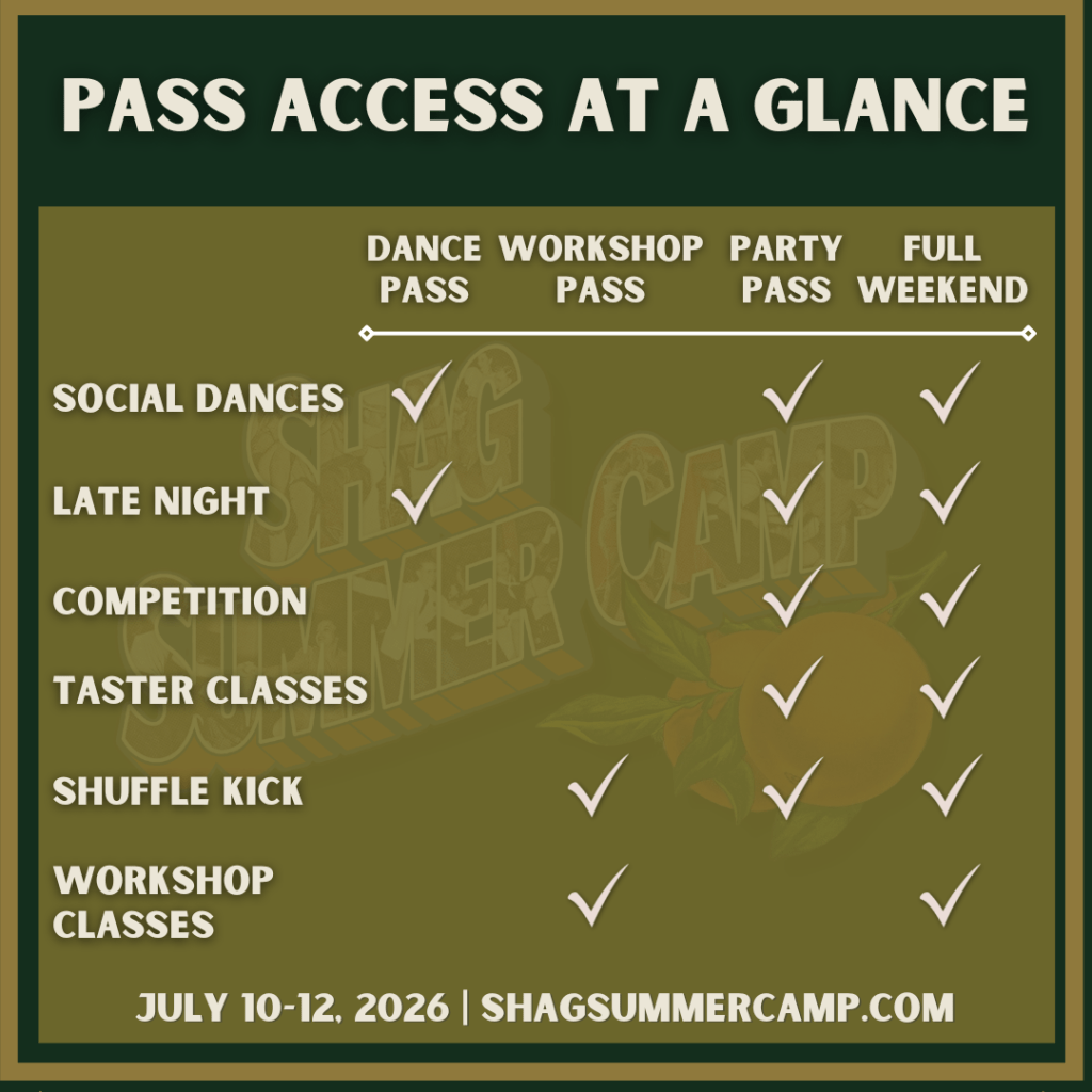 Available starting May 1st. Includes Friday, Saturday, and Sunday social dances only. Does not include taster classes.